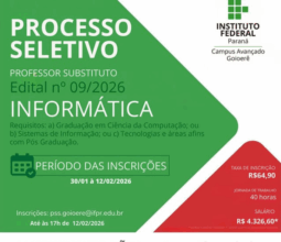 O Campus Avançado de Goioerê do Instituto Federal do Paraná (IFPR) está com inscrições abertas para o Processo Seletivo Simplificado destinado à contratação de professor substituto na área de Informática,…