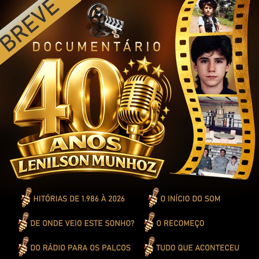 “Com muito orgulho, aceitei o desafio de contar toda a minha trajetória em um documentário. Nele, vou falar de tudo o que aconteceu desde o sonho de ser locutor — aliás, você sabe quem tinha esse sonho? —, de como consegui chegar ao rádio e o quanto isso mudou a minha vida. As conquistas, a transição do rádio para os palcos, o projeto Gang Musical, que marcou gerações, e a experiência de apresentar shows no majestoso palco da ExpoGoio, além da ExpoUmuarama, minha terra natal, entre tantos outros eventos. Também vou abordar as portas que se fecharam, os sonhos em que só eu acreditava, o caminho do sucesso ao recomeço. Vai ser emocionante dividir a experiência de um sonho do qual nunca desisti”, destacou Lenilson Munhoz.