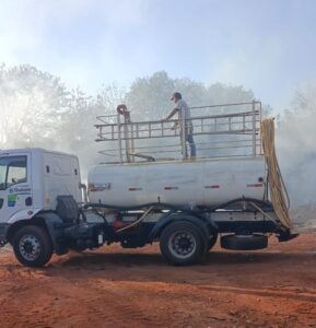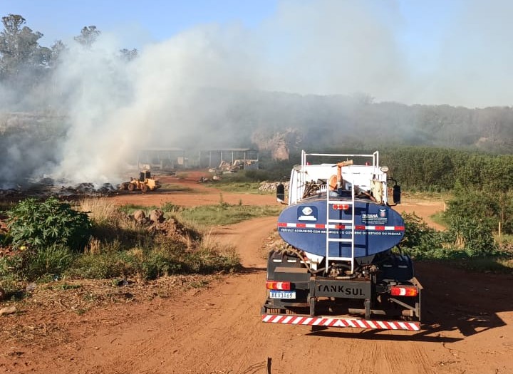 Na manhã desta sexta-feira (19), um incêndio atingiu a área da pedreira, utilizada pela Prefeitura para o descarte de resíduos volumosos, como sofás e colchões. Equipes do Corpo de Bombeiros e da Prefeitura trabalham no local para debelar as chamas.