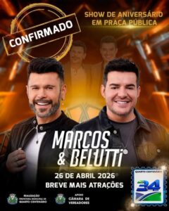 Com o anúncio, a programação musical fica completa. No dia 25 de abril, sobem ao palco as duplas Marcos & Belutti e Hugo & Tiago, consolidando uma agenda de shows pensada para agradar diferentes públicos.