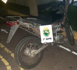 A Polícia Militar do 7º Batalhão recuperou, na madrugada desta quinta-feira (26), uma motocicleta que havia sido furtada no município de Cruzeiro do Oeste. A ocorrência foi registrada por volta das 1h51.