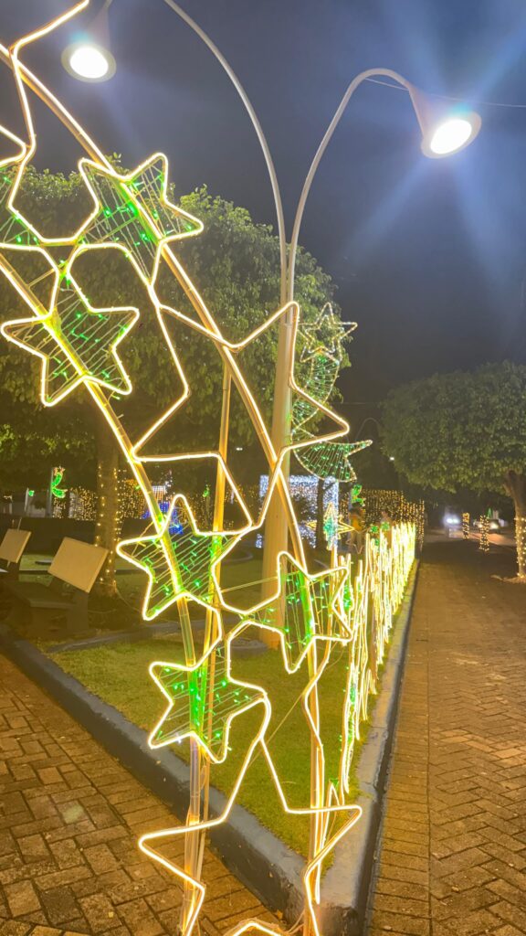 A decoração instalada na praça da Igreja Matriz chamou a atenção pela beleza dos painéis e pelo brilho que transformou o espaço em um verdadeiro cartão-postal. O prefeito Cássio Zanuto destacou o empenho de toda a equipe municipal para proporcionar uma cidade ainda mais acolhedora e iluminada neste fim de ano. A ação tem a parceria da Câmara de Vereadores,