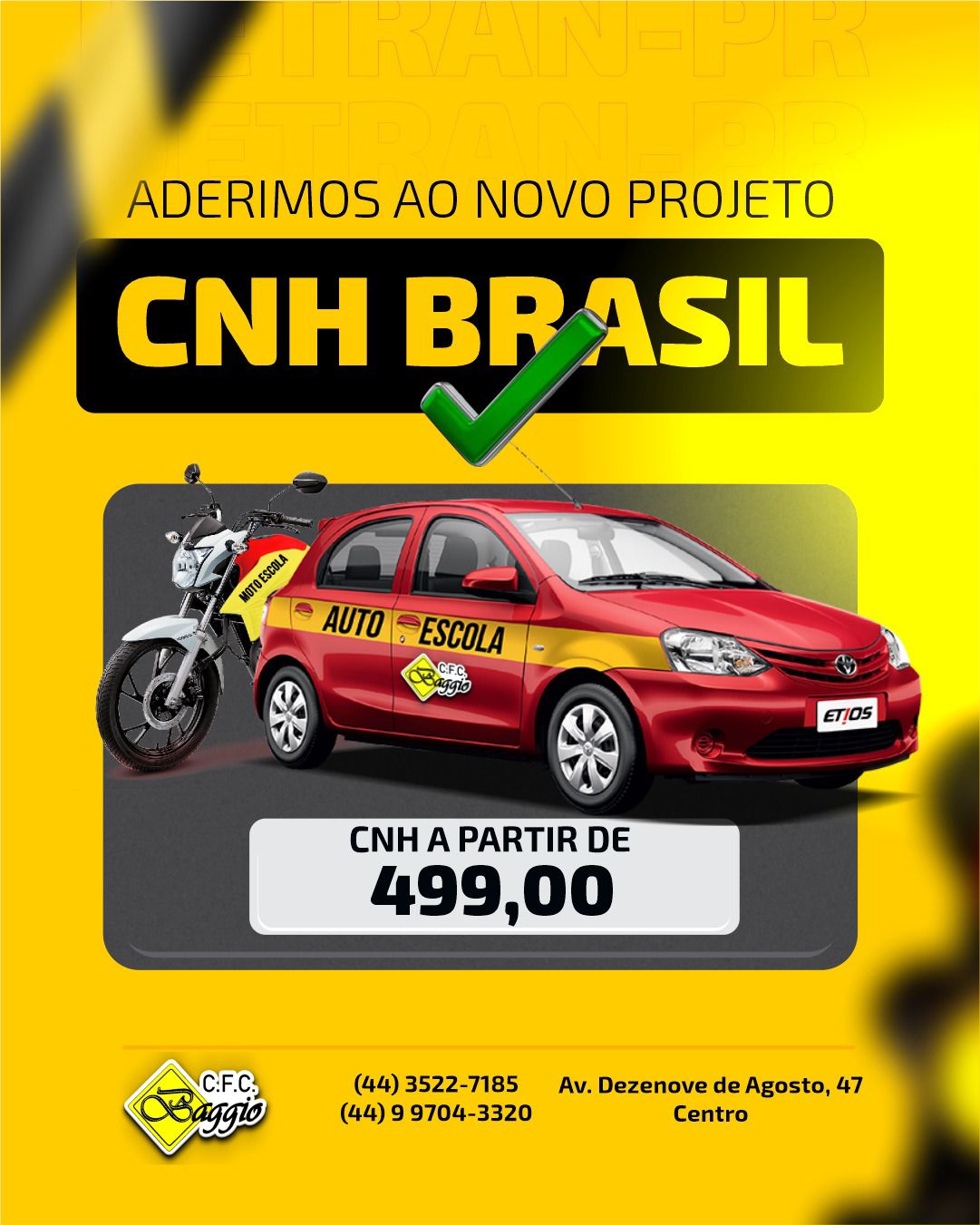 Notícias / Goioerê Auto Escola Baggio adere ao projeto CNH Brasil e oferece habilitação a partir de R$ 499 em Goioerê