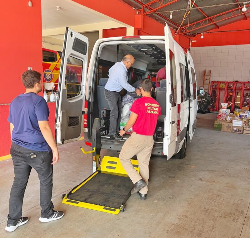 As doações foram entregues ao Corpo de Bombeiros de Campo Mourão, responsável por encaminhar os itens às famílias afetadas.
