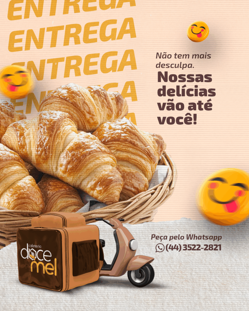 Atendendo aos pedidos dos clientes, a Cafeteria Doce Mel começa a oferecer serviço de delivery já neste sábado, 20 de setembro. O atendimento será realizado pelo WhatsApp (44) 3522-2821 a partir das 14 horas. Neste primeiro dia, os pedidos poderão ser feitos até às 19h.