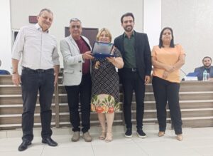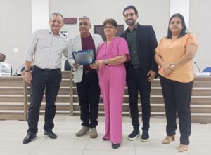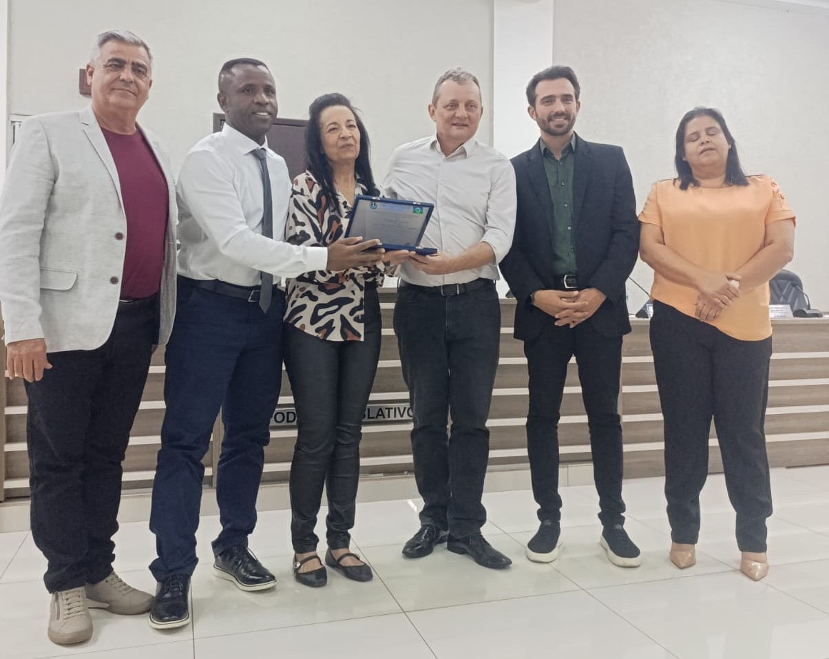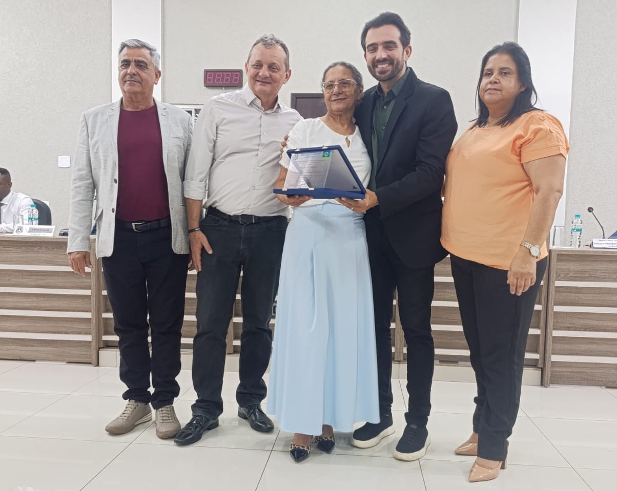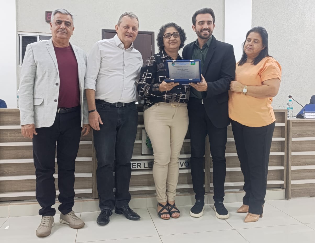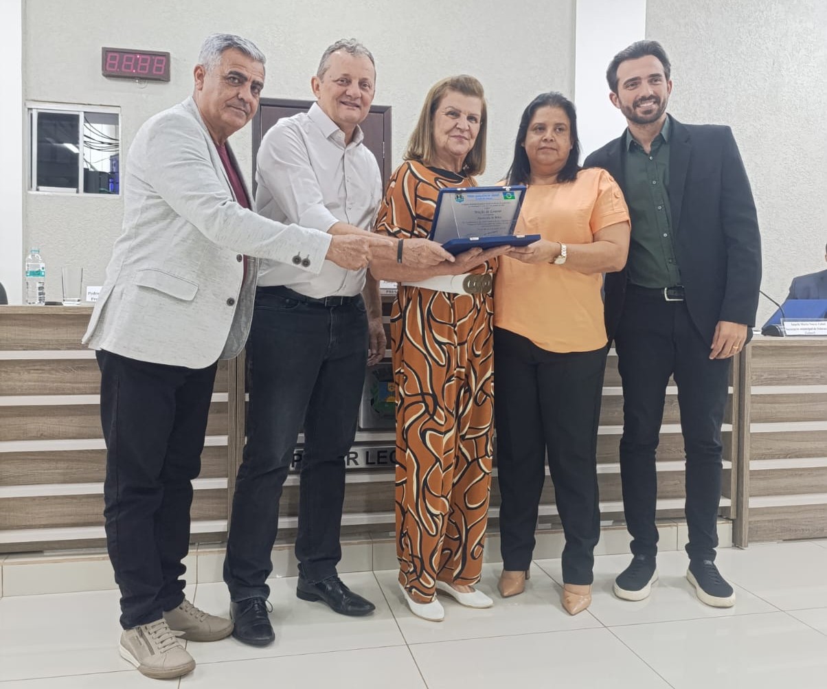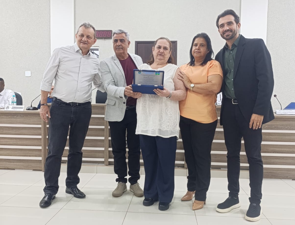 O evento aconteceu no plenário da Câmara e reuniu o prefeito Pedro Coelho, autoridades municipais, familiares e amigos dos homenageados. A sessão foi presidida pelo vereador Joaquim da Ambulância, presidente do Legislativo, e contou ainda com a presença dos vereadores Amarildo Alves, Léo da Auto Escola e Mayk Ramalho, além da secretária de Educação, Angela Zabot.