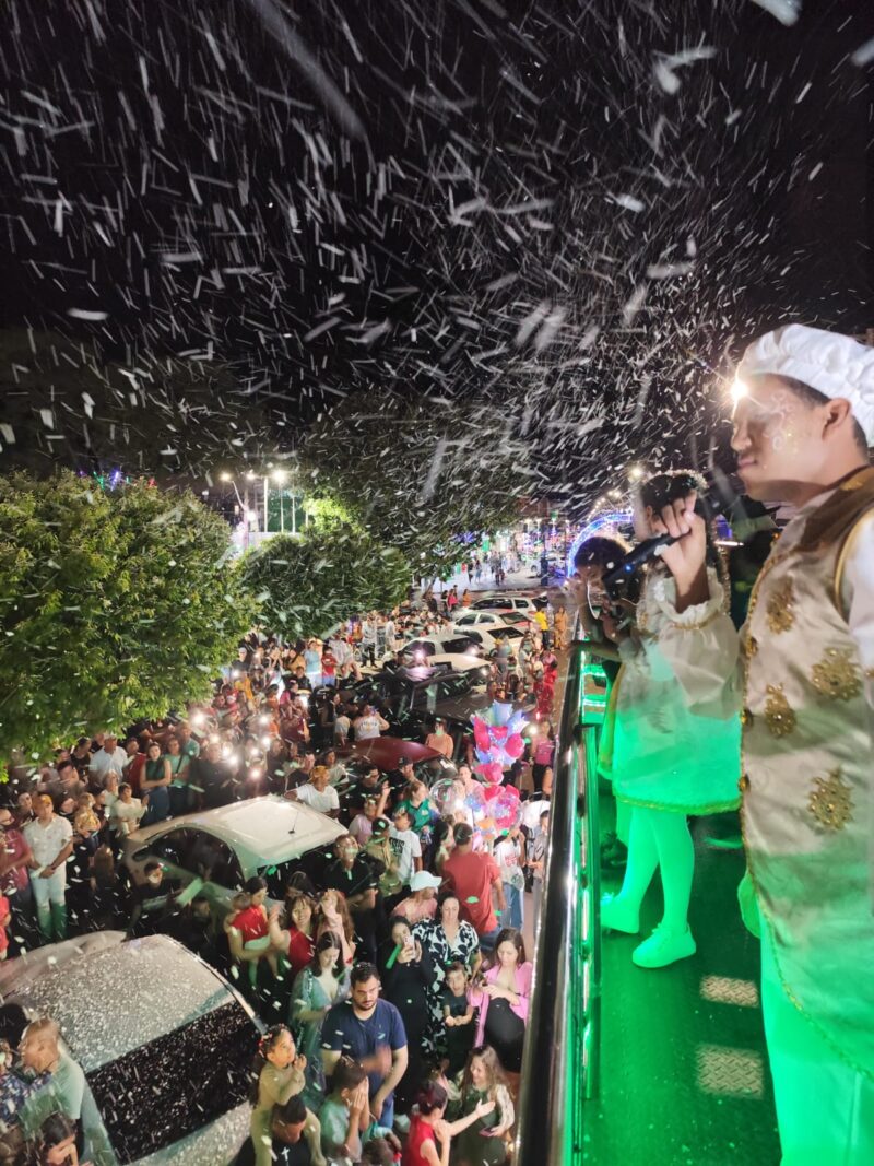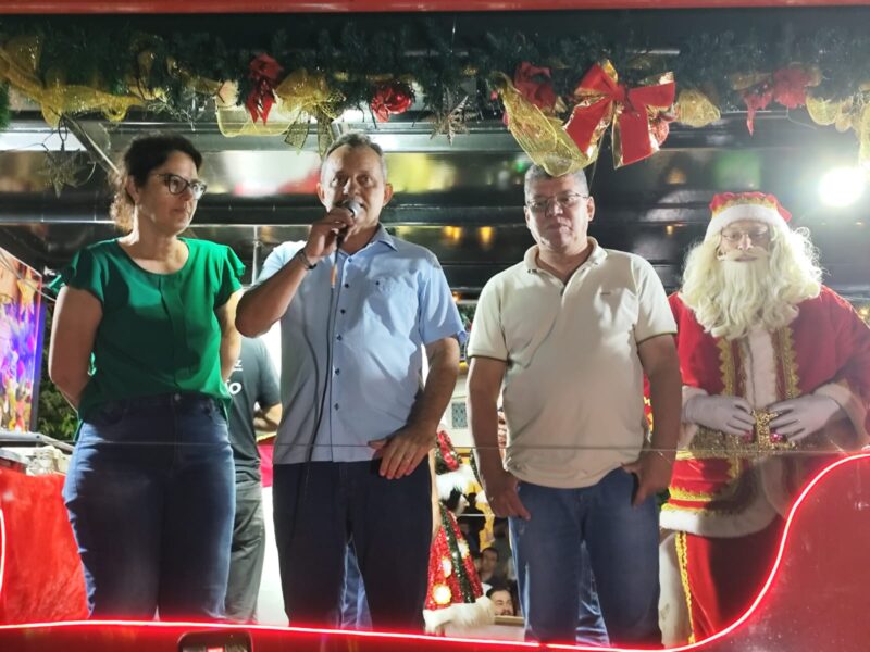 Antes de chegar à praça, Papai Noel e Mamãe Noel, acompanhados da trupe do Encantart formado por dezenas de personagens natalinos, da Mamãe e do Papai Noel, percorreram todos os bairros da cidade, levando encanto, música e o clima do Natal. A caravana contou com a presença do prefeito Pedro Coelho, do vice-prefeito Adilson Brito, do presidente da Câmara Municipal, Joaquim Rafael Neto, além de vereadores e secretários municipais. Durante o trajeto, o grupo anunciou a chegada do Bom Velhinho e distribuiu balas às crianças.