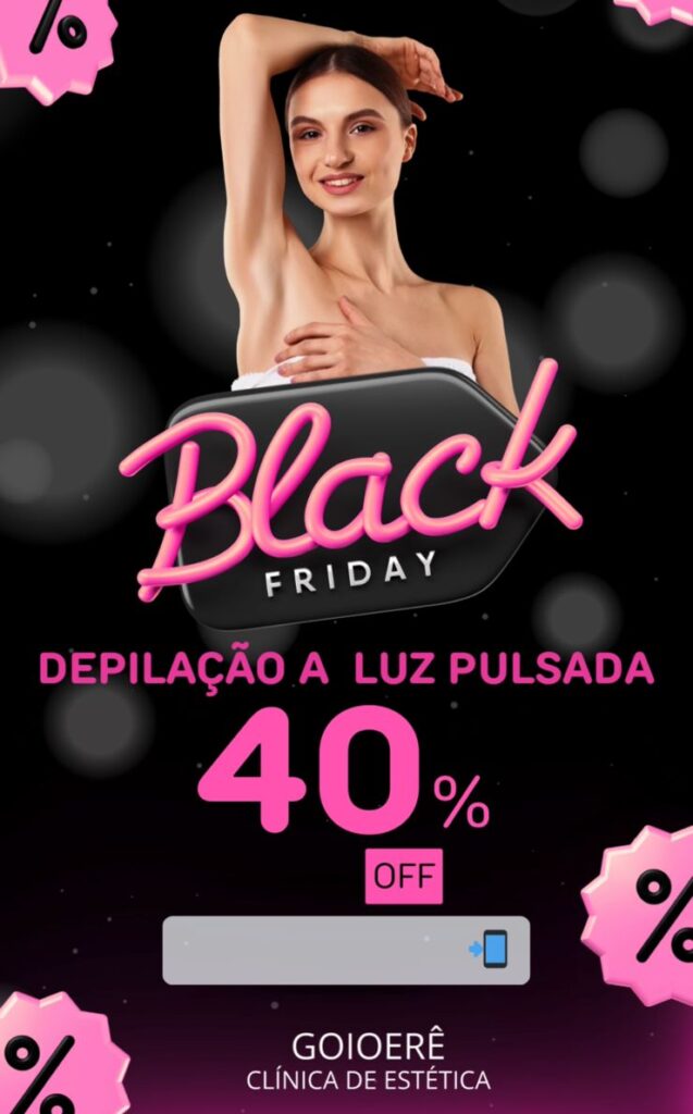 A Black Friday chegou com tudo na Clínica de Estética de Goioerê está com uma promoção especial. A depilação à luz pulsada, um dos procedimentos mais procurados por quem busca praticidade e resultados duradouros, está com 40% de desconto para pagamentos à vista. Já quem optar pelo pagamento no cartão garante 20% OFF. A oferta é válida até o dia 29 de novembro, e as vagas são limitadas.