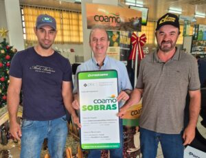 Os cooperados Rogério e Pedro Porfírio Pereira (foto), com o gerente Carlos Alberto Ulian, ressaltam que “A Coamo é uma cooperativa muito bem administrada, sempre comprometida em gerar excelentes resultados para seus cooperados. Temos confiança no trabalho realizado e orgulho de fazer parte desta história.”