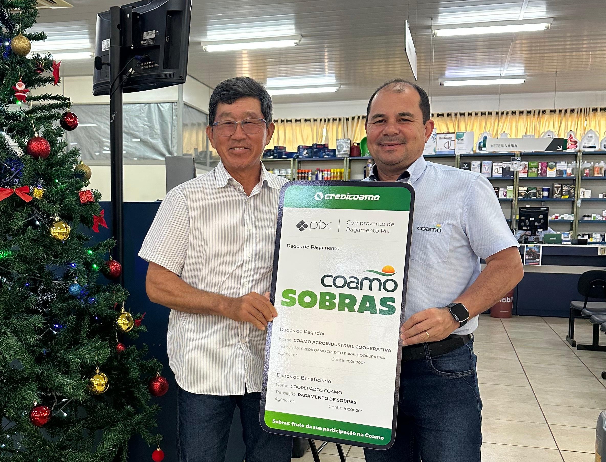 Em Quarto Centenário, os cooperados Renan Pavanelli e Marcelo Chaves também celebraram o adiantamento das sobras para o fortalecimento do vínculo entre cooperados e Coamo, reforçando que a distribuição é um reconhecimento direto ao trabalho de cada produtor ao longo do ano.