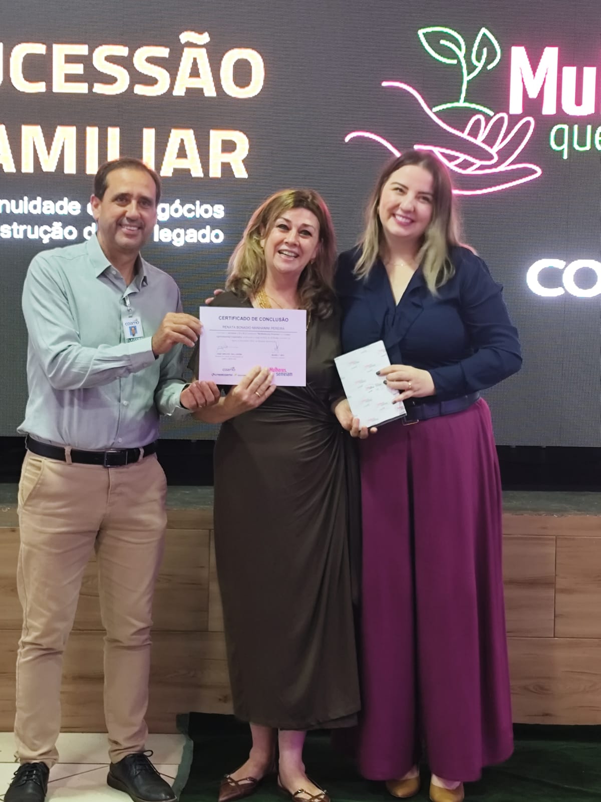 O curso teve como objetivo fortalecer o protagonismo feminino no cooperativismo e nas propriedades rurais, promovendo o aprendizado, o diálogo e a valorização da mulher no campo. Composto por três encontros temáticos, o programa abordou temas essenciais como Sucessão Familiar, Gestão de Pessoas e Liderança.