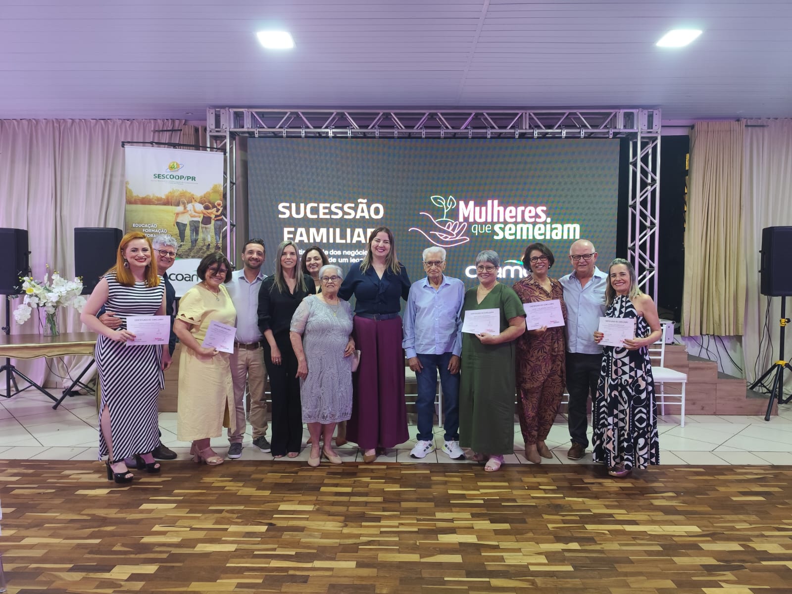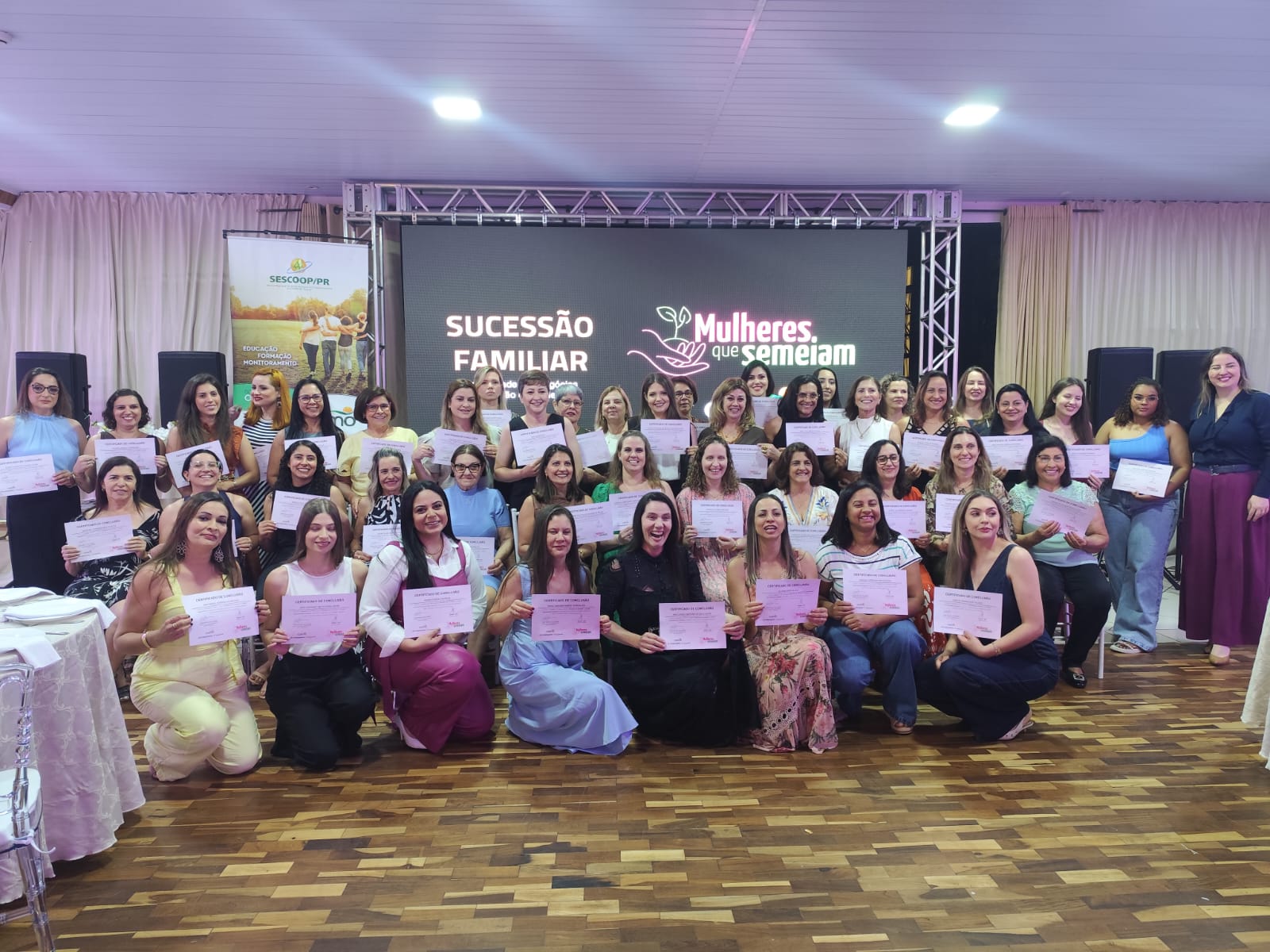 Um momento de celebração e reconhecimento marcou a formatura das 45 mulheres participantes do curso “Mulheres que Semeiam”, programa de capacitação promovido pela Coamo que reuniu cooperadas, esposas e filhas de cooperados. O evento contou com a presença das formandas e de seus familiares, totalizando cerca de 150 pessoas.