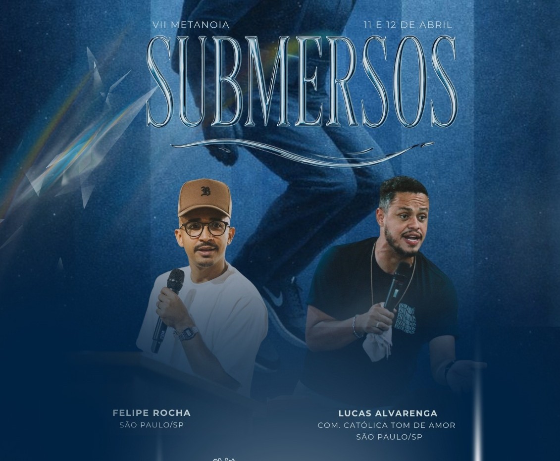 O VII Metanoia – Submersos também confirmou a presença de dois pregadores que irão conduzir momentos de espiritualidade durante o encontro. Entre eles está Lucas Alvarenga, da Comunidade Católica Tom de Amor, conhecido por levar uma mensagem marcada pela misericórdia e pelo amor de Deus que restaura histórias e cura feridas. Também participará Felipe Rocha, pregador e missionário que já integrou o movimento Jovens Sarados e que chega com a missão de conduzir os participantes a um chamado profundo de conversão, entrega e intimidade com Deus.