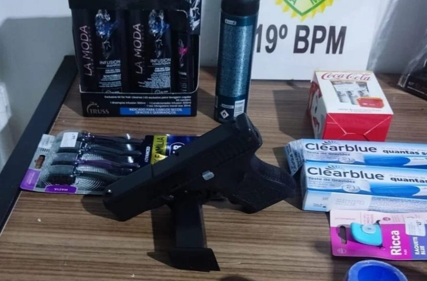 Logo após concluir o cadastro, anunciou o assalto. Segundo relato da atendente, o suspeito simulou estar armado ao manter a mão na altura da cintura, sobre um volume sob a roupa, e exigiu o dinheiro disponível no caixa. A funcionária entregou R$ 467 em espécie, valor que foi colocado em uma das sacolas junto com os produtos. Em seguida, o homem deixou o local levando quatro sacolas com mercadorias e o dinheiro.