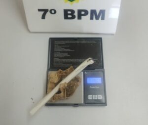 Segundo a equipe, ao perceber a aproximação da viatura, um dos jovens dispensou um objeto semelhante a um cigarro. Na abordagem, os policiais encontraram com o outro envolvido um invólucro contendo cerca de sete gramas de maconha. O material dispensado também foi localizado, sendo constatado que se tratava da mesma substância, totalizando mais duas gramas.