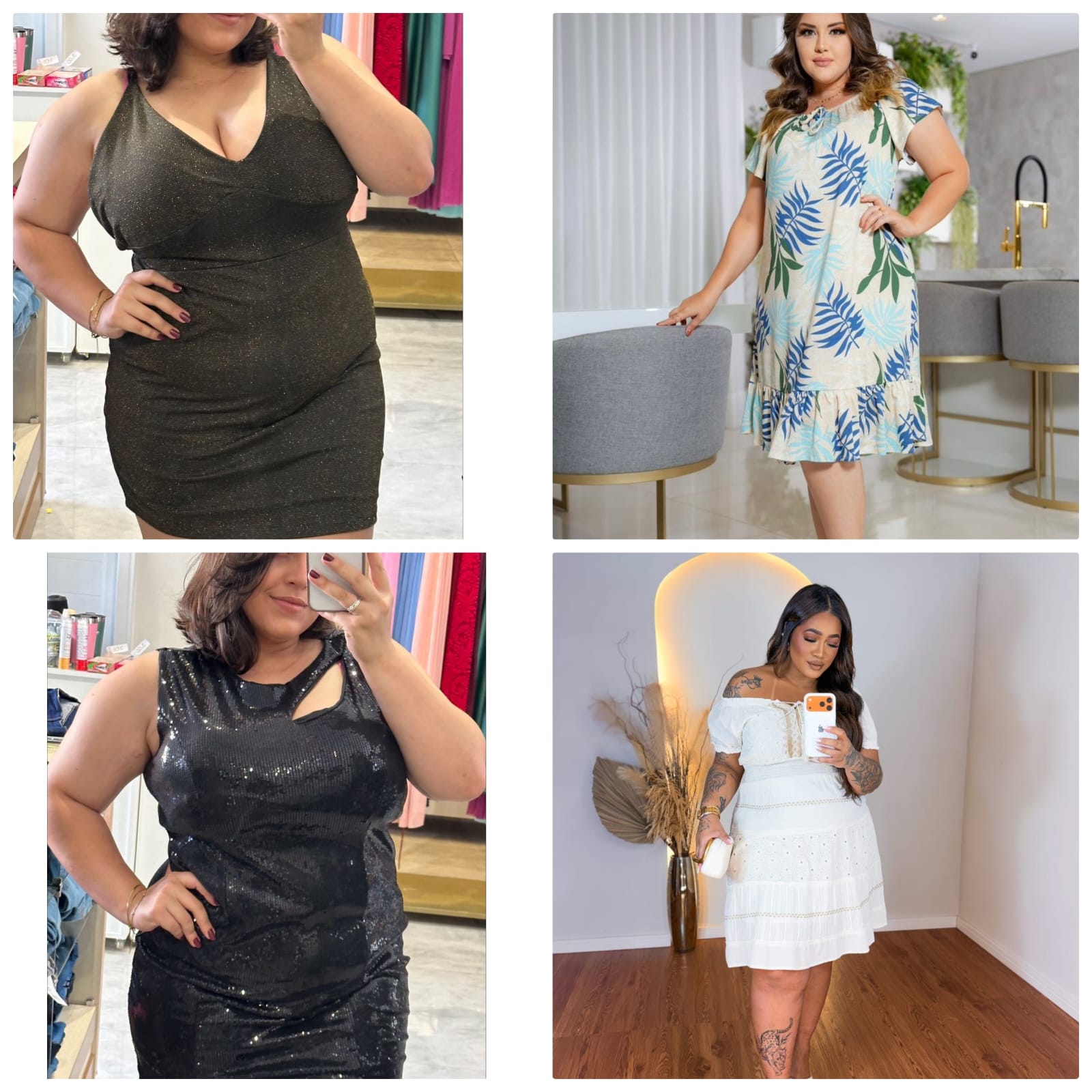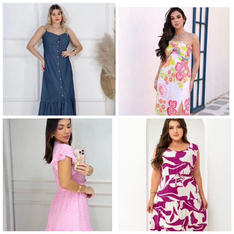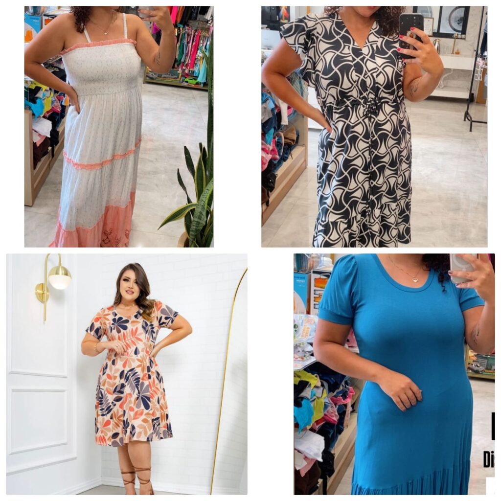A loja destaca um mix de peças que atende todos os perfis, com modelos para jovens, adultas, senhoras e também opções plus size, garantindo diversidade de estilos e tamanhos.