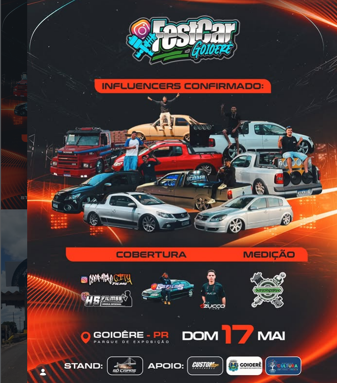Os apaixonados por carros preparados e cultura automotiva já podem marcar na agenda: no dia 17 de maio de 2026 acontece a 4ª edição do Fest Car Rebaixados, no Parque de Exposição de Goioerê. O evento será realizado das 8h30 às 18h e promete ser a maior edição já realizada.