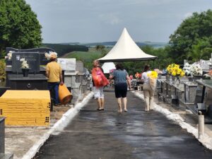As centenas de flores espalhadas sobre os túmulos mostram que a população tem se organizado para prestar suas homenagens de forma antecipada, deixando o cemitério florido e cheio de vida neste fim de semana de recordação.