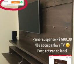 Vende-se móveis usados em Goioerê: painel suspenso, mesa para computador e cama box de solteiro. Contato: (44) 99727-7900.