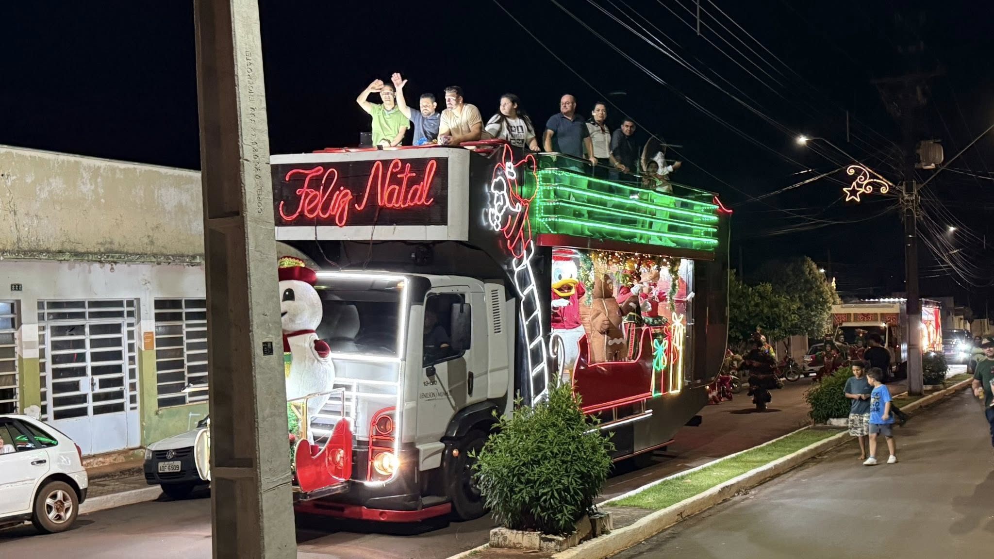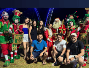 Com a apresentação da equipe Encantart, o público foi envolvido por música, alegria e personagens que ajudaram a criar um clima especial. Papai Noel e Mamãe Noel foram recebidos com festa, encantando especialmente as crianças, que viveram momentos de pura emoção.