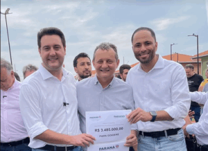 O prefeito Pedro Coelho participou, nesta quinta-feira (2), da solenidade de inauguração do Condomínio do Idoso em Campo Mourão, com a presença do governador Ratinho Júnior. Durante o evento, foi anunciada a destinação de R$ 3.485.000 para o município de Goioerê, recurso que será aplicado na compra de maquinários.