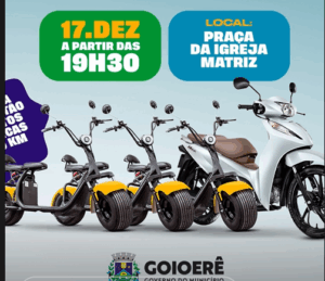 Durante o evento, serão sorteados prêmios importantes, sendo uma motocicleta a combustão e três motos elétricas, reforçando o reconhecimento da Administração Municipal aos cidadãos que cumprem com suas obrigações fiscais.