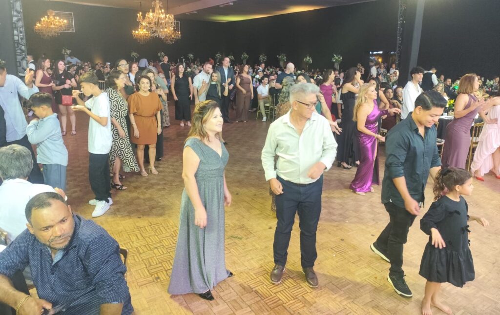 Com um ambiente cuidadosamente preparado, os convidados foram recepcionados com uma mesa de frios e, na sequência, um jantar especial. A trilha sonora da noite ficou por conta da banda Abba Live, seguida pela animação do casal Dicão e Solange, que garantiram um clima descontraído e festivo.
