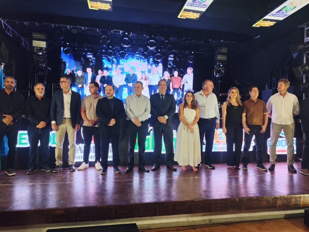 O ponto alto da noite foi a posse da nova diretoria da Associação Comercial, prestigiada por autoridades, entre elas o prefeito Pedro Coelho. Em sua fala, ele destacou o papel da entidade como uma verdadeira “engrenagem propulsora da economia” local. O prefeito também adiantou expectativas para a ExpoGoio, ressaltando a proposta de portões abertos e uma programação pensada para fortalecer o comércio, com foco em incentivar o consumo local. Também falou da Festa do Leitão Maturado e dos shows que terão dirante o dia para que os convidados tenham uma festa inesquecível.