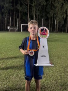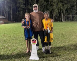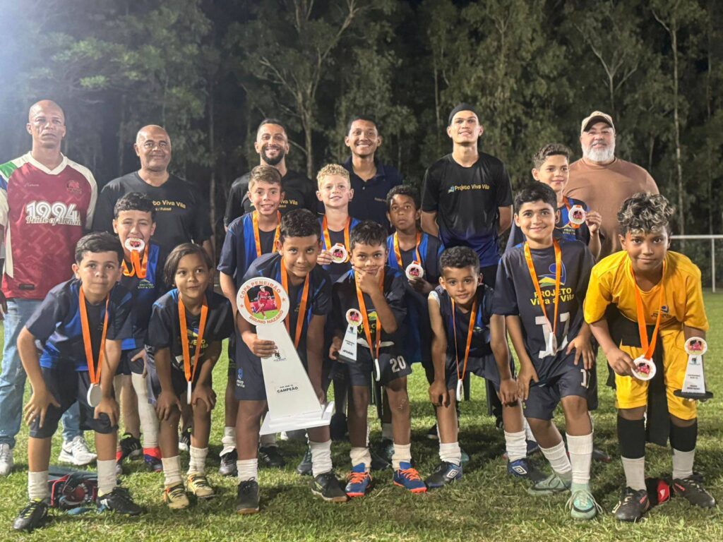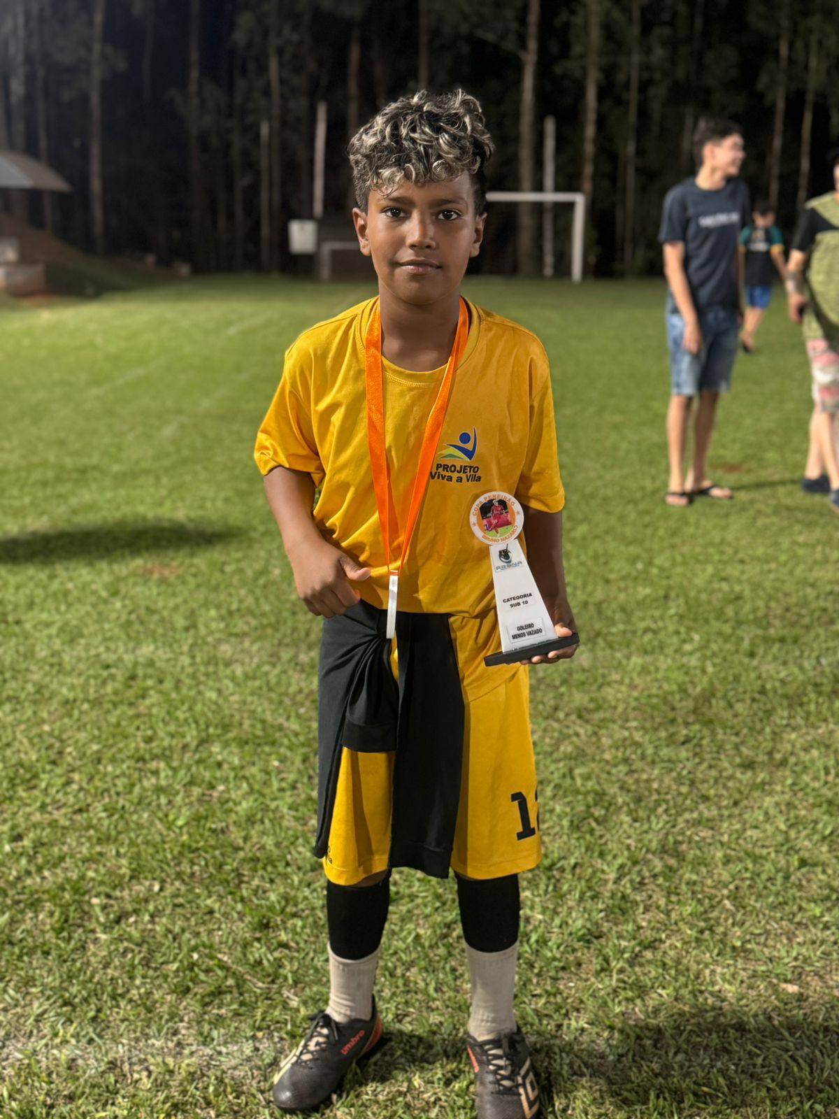 Os atletas do Projeto Viva a Vila, de Goioerê, estão em destaque no esporte. No último final de semana, o grupo sagrou-se campeão da 1ª Copa Bruno Nazário 2025, na categoria Sub 10, competição que reuniu escolinhas e talentos de várias cidades. Além disso, a equipe também garantiu vaga na final da Taça Edina Alves, reforçando a excelente fase e o alto nível do trabalho desenvolvido pelo projeto.