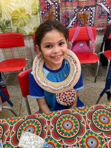 As atividades foram distribuídas em diferentes espaços da escola, cada uma com uma proposta específica voltada ao aprendizado sobre ancestralidade e identidade cultural.