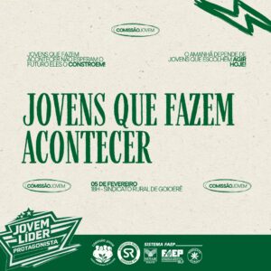 O Sindicato Rural de Goioerê realiza, no dia 5 de fevereiro, o talk show “Jovens que Fazem Acontecer”, um evento voltado à juventude que acredita no protagonismo, na liderança e na construção ativa do futuro. O encontro será realizado a partir das 18h, na sede da entidade. O evento é aberto ao público jovem interessado em ampliar conhecimentos, trocar experiências e fazer parte de um movimento que acredita que o futuro se constrói com ação no presente.
