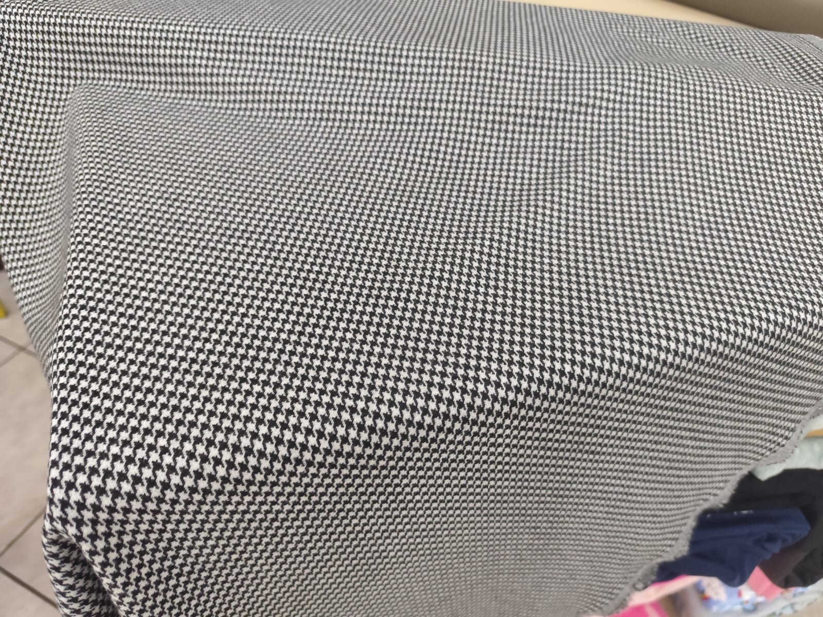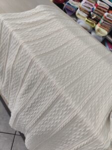 Fechando a lista, o Kinit Jaquard se destaca pela sofisticação. Produzido com desenhos incorporados na própria trama do tecido, dispensa estampas e garante acabamento diferenciado. Mais estruturado, mas ainda elástico, é ideal para peças como casacos leves, vestidos para o trabalho, blazers modernos e saias com mais forma. O material atende clientes que buscam um visual mais elaborado, com “cara de loja”.