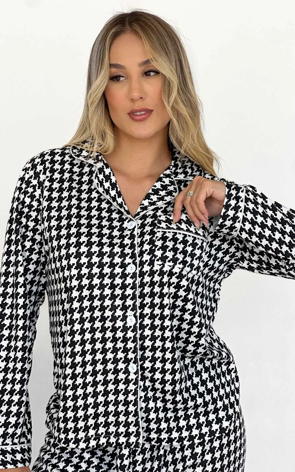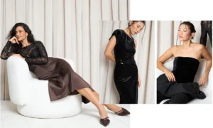 Outra aposta é o Veludo Malha, que combina o brilho sofisticado do veludo com a praticidade da malha. Mais leve e com elasticidade, o tecido não amassa com facilidade e se adapta bem ao inverno local. Entre as sugestões estão blusas de gola alta, vestidos midi, saias, blazers leves e até peças infantis para ocasiões festivas. É uma opção voltada principalmente para o público feminino adulto e para quem produz peças para venda, inclusive nas redes sociais.