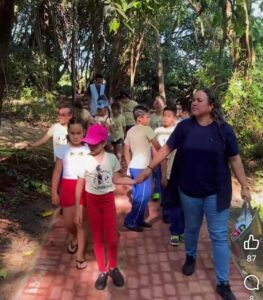 A professora Milena S. Garofalo que pesquisa “O uso de trilhas ecológicas para o ensino de Botânica nos anos iniciais do Ensino Fundamental”, utiliza a trilha como uma espécie de laboratório a céu aberto, onde cada detalhe — das folhas ao solo — vira conhecimento e oportunidade de reflexão.“Quando a criança percebe a natureza de perto, ela aprende de forma mais verdadeira. A vivência faz toda diferença”, destaca a educadora em suas atividades, que vêm fortalecendo o vínculo dos estudantes com o território e com o meio ambiente.
