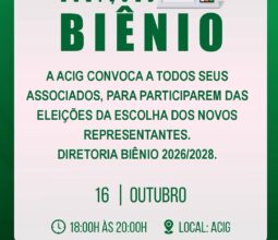 A Associação Comercial e Empresarial de Goioerê (ACIG) realiza, na noite desta quinta-feira, 16, a eleição para escolha da nova diretoria que comandará a entidade no biênio 2026/2028. A votação…